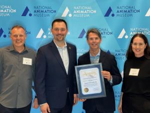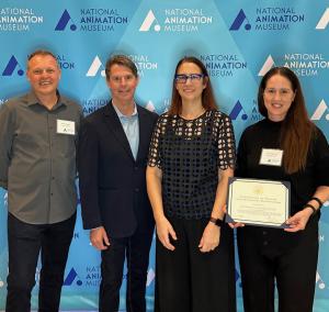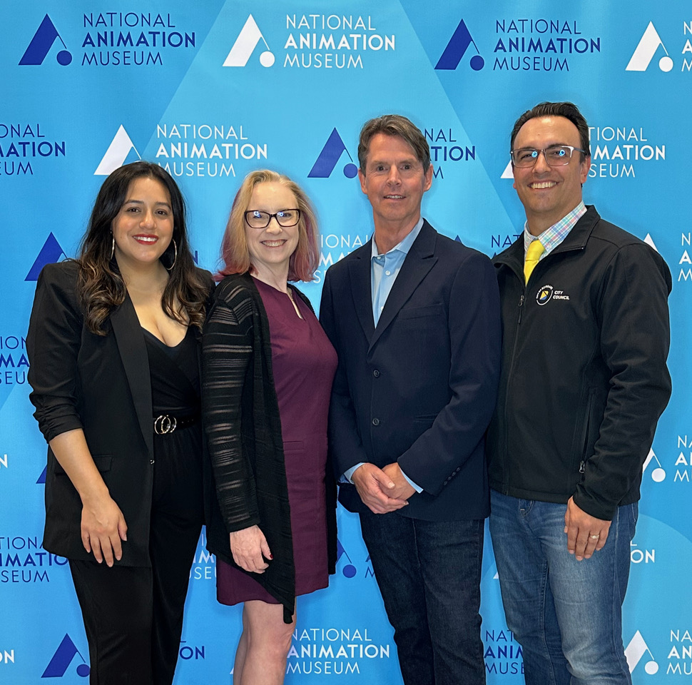 Left to right: NAM Creative Director Robin Stapley, NAM CEO and Founder Eddie Newquist, U.S. Congressmember Laura Friedman (CA-30), and NAM Planning Director Christine Farris. Courtesy of the National Animation Museum.